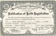 •Notification of Birth Registration for Ozetta Izora Bourassa, father Daniel J. Bourassa, and mother Ollie Mae Harris. 1pg.