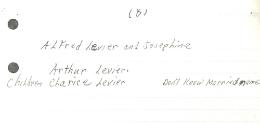 •Photocopy of group of documents of Levier family history, other sur names Lewis, McKinney, Nelson, Bradford, Aitkens, Hubbard, Vieux, Battese, Willimett, Mulanax, Lavia, Walking Stick, Olson, Wilson, Kopfle, Cooper, Greenmore, Wamego, Maines, and Vanderbloom. 25 pgs.